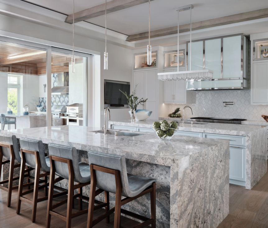 Located in Naples, Florida, the Sea Glass Sanctuary stands as a testament to the beauty of nature, expertly blending traditional elements with modern design features. Inspired by naturally occurring sea glass collected by the homeowner from Collier County’s beaches, this 9,300 square foot private residence embodies transitional design.